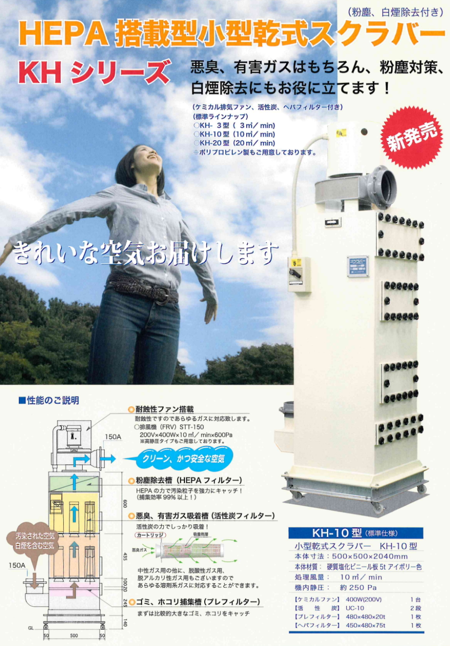 | KHシリーズ PVC製 粉塵、白煙除去装置付き 悪臭、有害ガスはもちろん、 粉塵対策、白煙除去にもお役に立てます! ケミカル排気ファン、活性炭、へパフィルター付き ------- 標準ラインナップ ------- ![]() ※他に、PP(ポリプロピレン)製もご用意しております ※下記静止画像の番号クリックで拡大画像でご覧になれます お気軽にお問合せください |